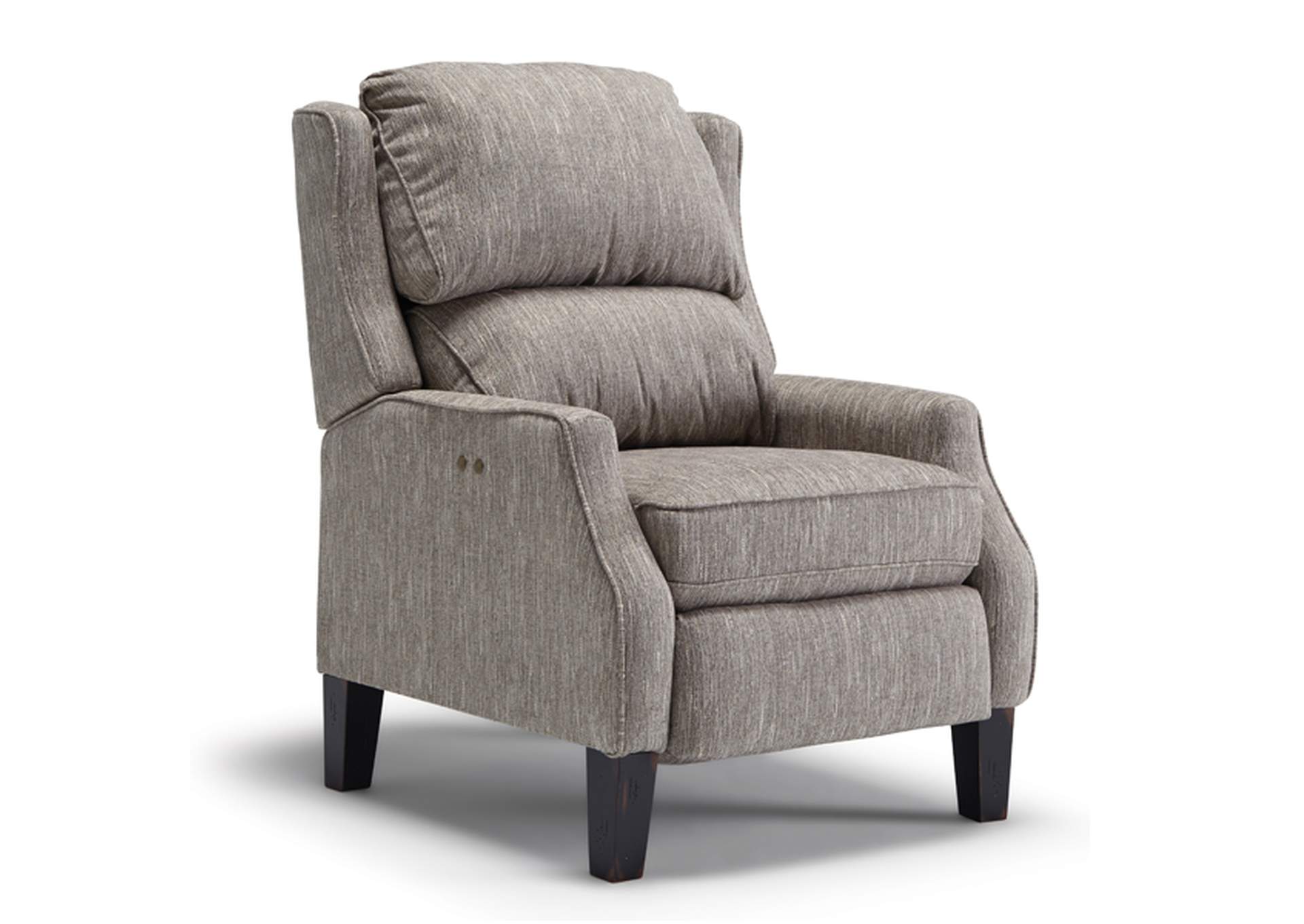 Elegant and solid, this chair elevates the style of any room, and because it's a recliner in disguise, it will elevate your legs as well! The Pauley by Best Home Furnishings brings together some of the best opposing elements. With an effortless push on the arms, you can recline all the way back into whatever postion makes you most comfortable. Or, choose power and at the simple tap of the metallic buttons, you can stop and go at ease. This is more than just a stylish recliner. The coil spring seat cushion will add years of comfortable support, and the premium cushioning fibers in the back act like a high end mattress with pillow top. Add or remove some of the premium cushioning fiber to customize the level of support provided by the Pauley high leg recliner. The column feet come with an option of Dark Walnut, Riverloom, or Espresso finishes accenting the fabric or leather style of your choice.