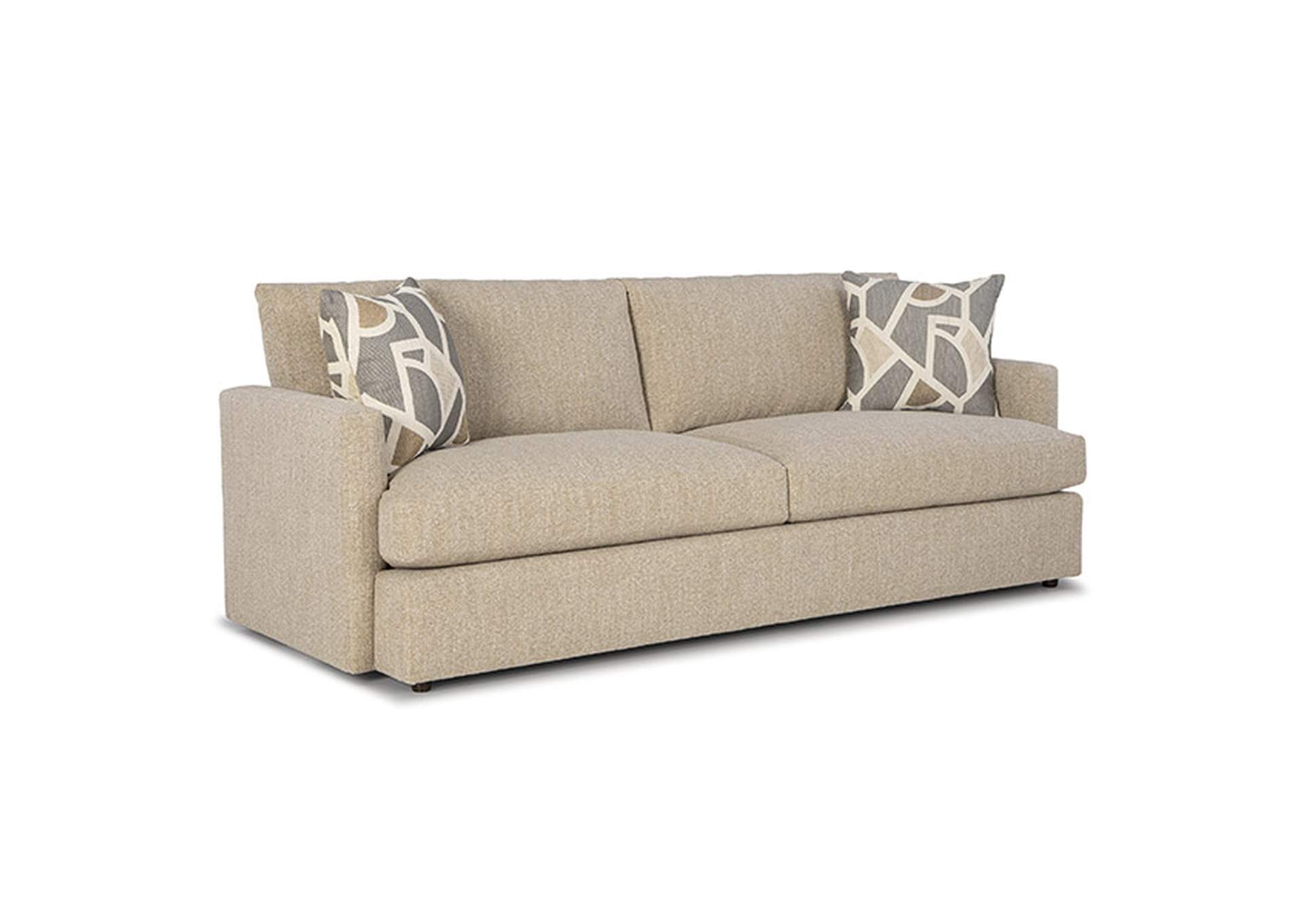 Rumor has it, you'll be sleeping with something else. This expansive 93" silhouette features a lush Down Feather blend, cloud-like hybrid seat cushion and immense pillow fibers in the back that offers a spot to curl up and a never-want-to-leave feeling. The crisp, clean lines define the elegant frame with a stepped front rail, tuxedo arm and back. Despite a design that wages war on comfort, there's a harmonious balance of design and comfort. One sit and it'll be the talk of the neighborhood.