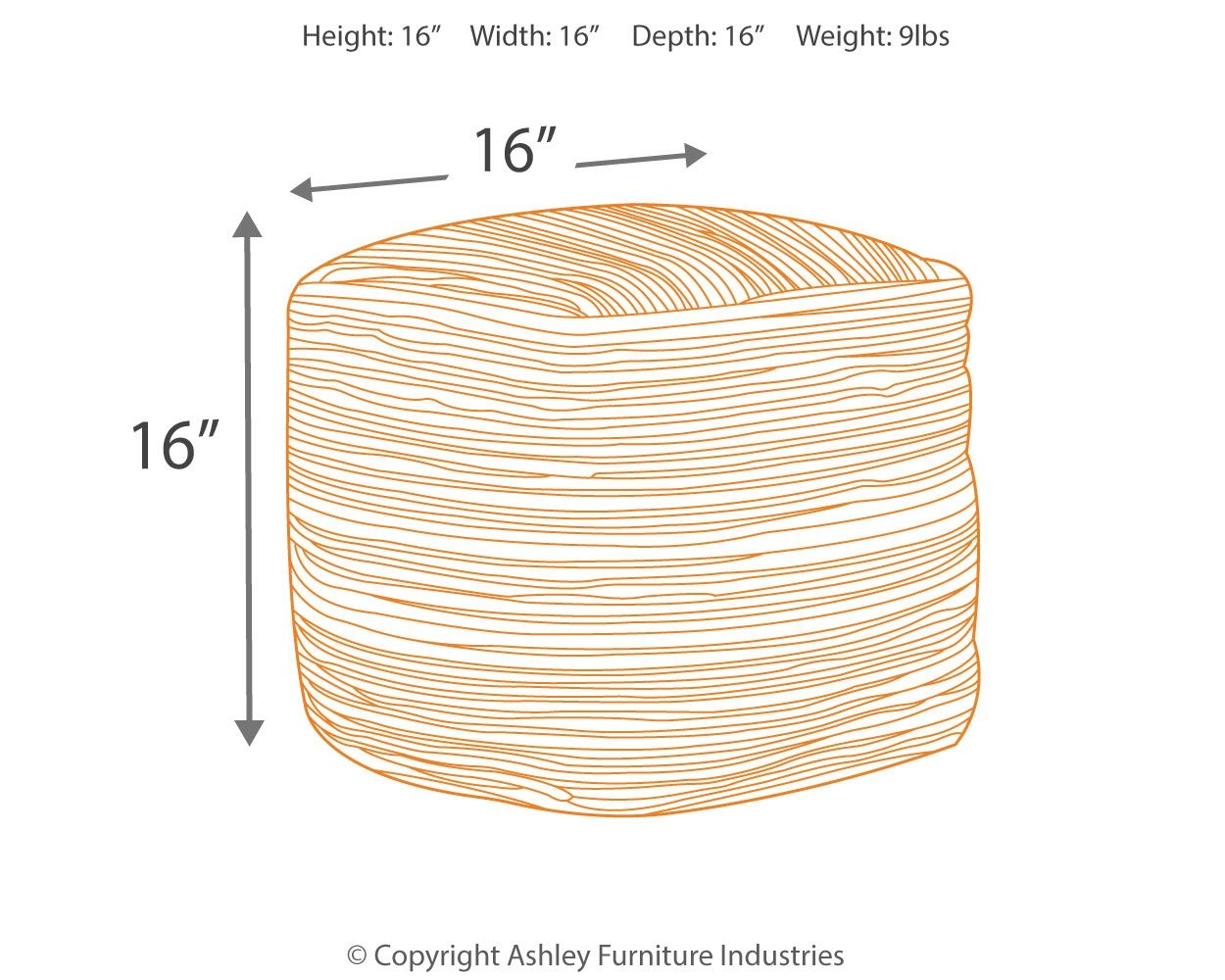 16.0"W x 16.0"D x 16.0"H - 9.0 lb