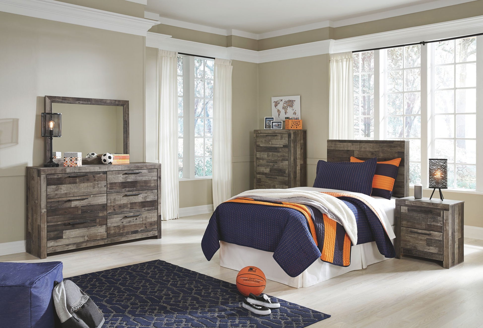 Derekson - Twin Panel Headboard with Bolt on Bed Frame - Multi Gray