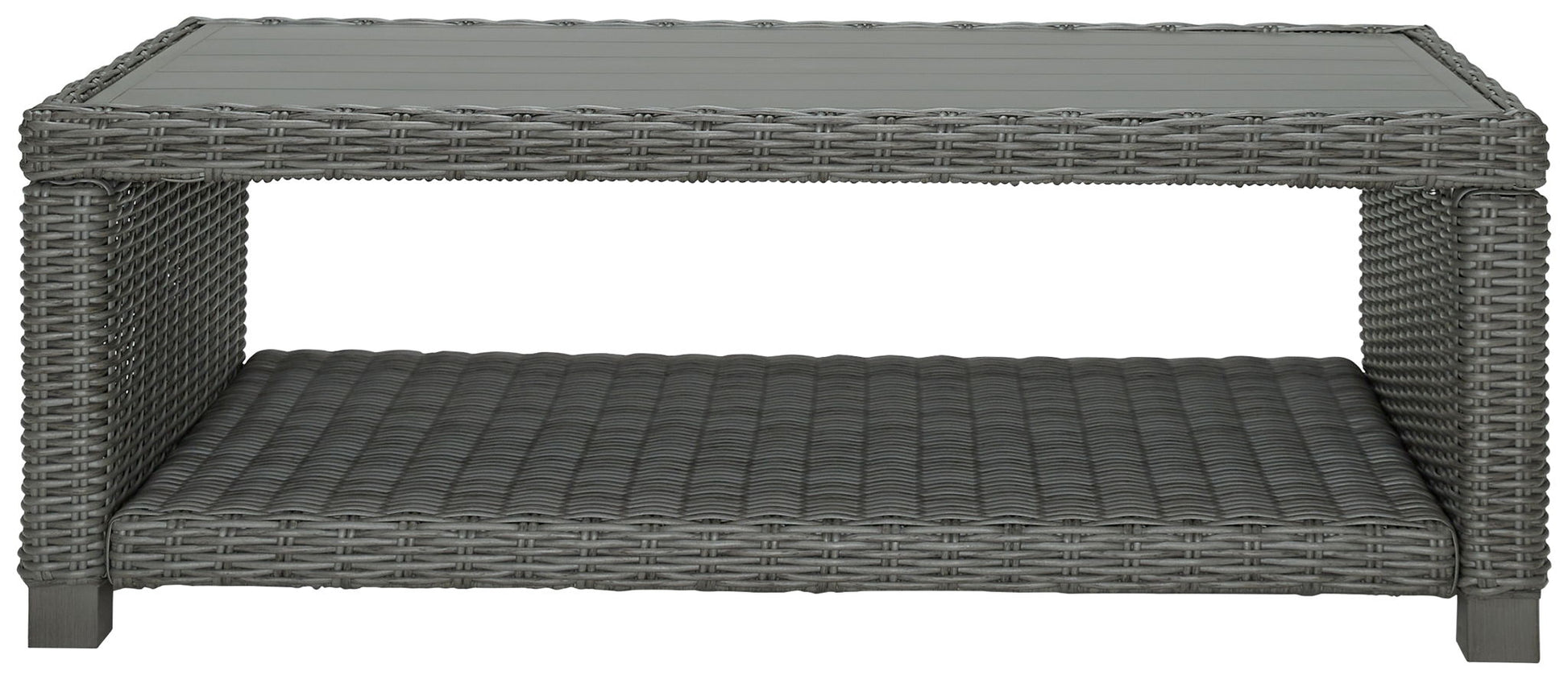 Add a distinguished touch of gray to your outdoor living space with this coffee table. This head-turning table is made with resin wicker over an aluminum frame for a relaxed look that provides seasons of enjoyment. Its aluminum top combines the exceptional durability and weather resistance you need with the "wood look" finish you love.