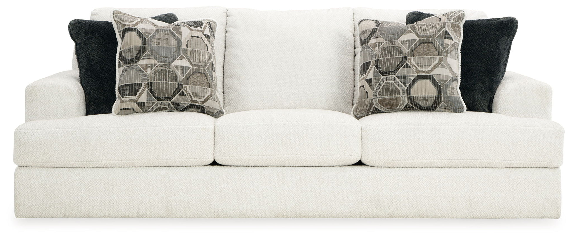 Craving casual refinement? This sofa has you covered. Its decidedly contemporary frame cradles sizable cushions in an ultra-soft neutral hue, lightening the mood in your living room with simple style and everyday comfort. Solid and geometric accent pillows perfect the chic-meets-cozy vibe.